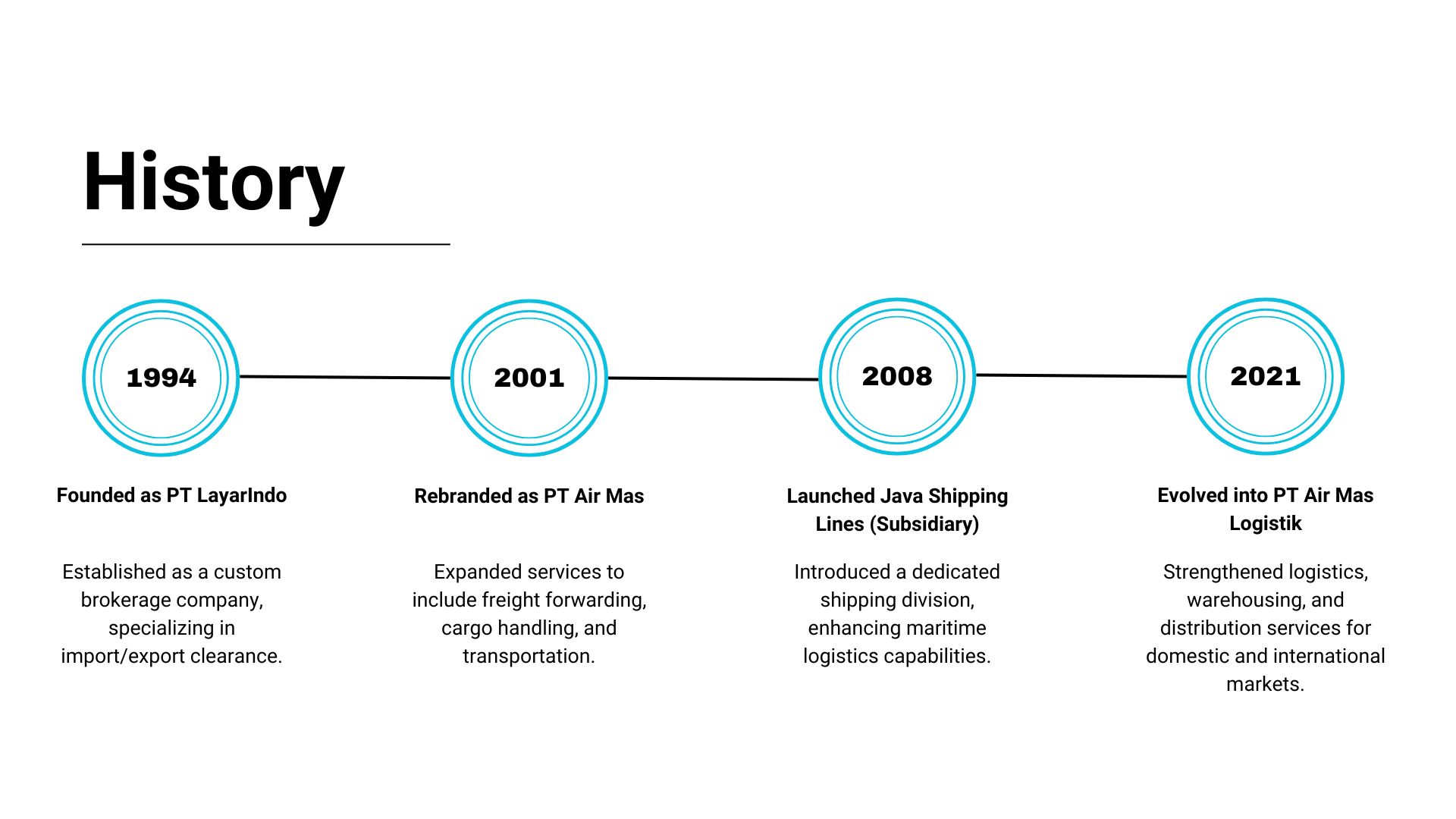 PT Air Mas Logistik is a company with expertise in handling business activities in the fields of transportation, ship loading and unloading, cargo, warehousing, and trade. In supporting domestic and international transportation activities, our fleet of land and sea transportation is always ready to deliver goods to various destinations.